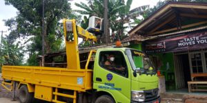 Kepala Desa dan Kaur Perencanaan Desa Gunungguruh ikut memantau langsung petugas Dishub memperbaiki lampu PJU menggunakan mobil sky lift, sehingga memudahkan saat lakukan pergantian lampu PJU.